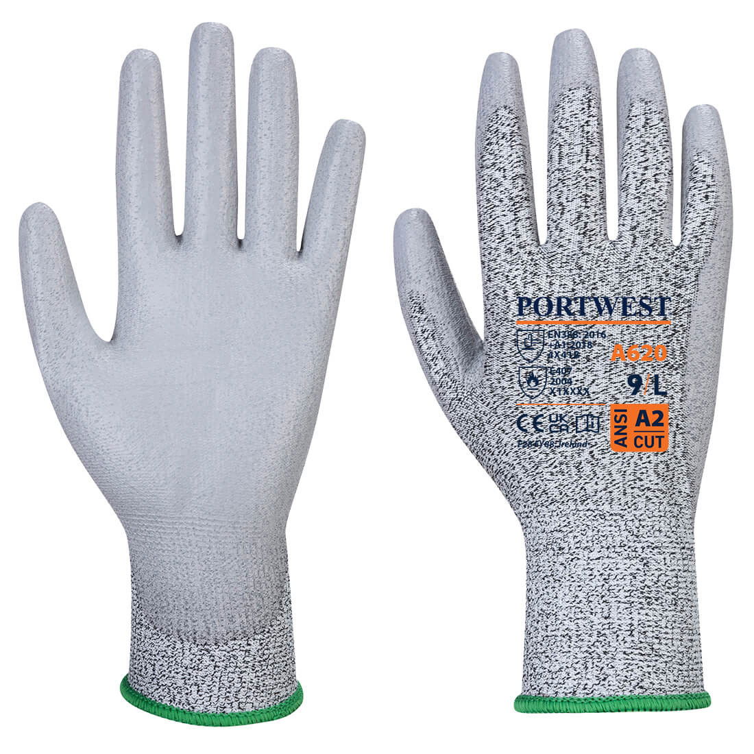Portwest A620 - PU tenyérmártott vágásbiztos kesztyű Cut B, szürke
